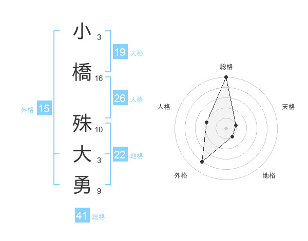 小橋 殊大勇さんを姓名の画数から五運を鑑定