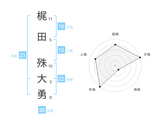 梶田 殊大勇さんの外格は23画の5点!