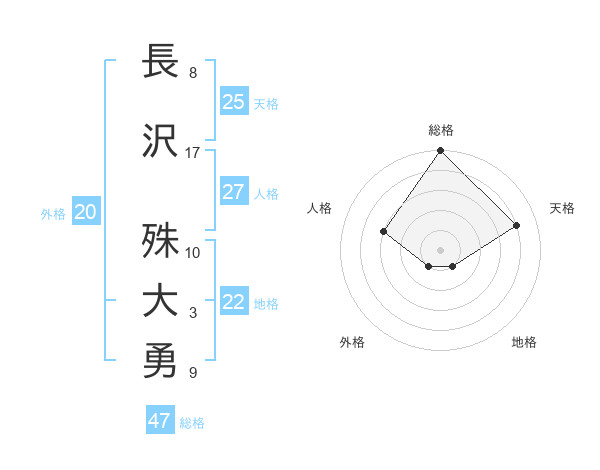 長沢 殊大勇さんを姓名の画数から五運を鑑定