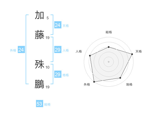 加藤 殊鵬さんを姓名の画数から五運を鑑定