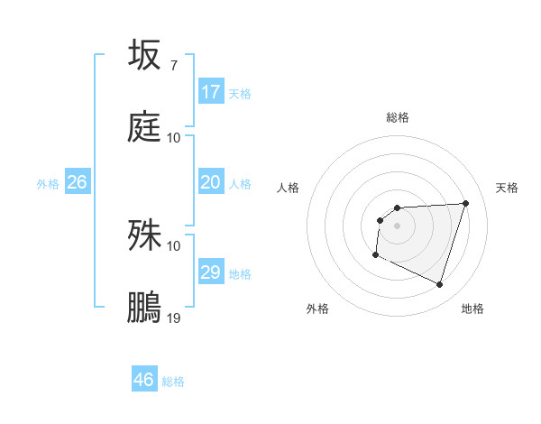 坂庭 殊鵬さんの総格は46画の1点!