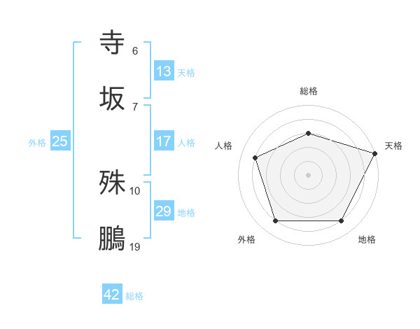 寺坂 殊鵬さんを姓名の画数から五運を鑑定