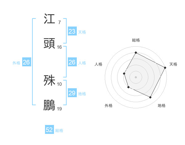 江頭 殊鵬さんの総格は52画の4点!
