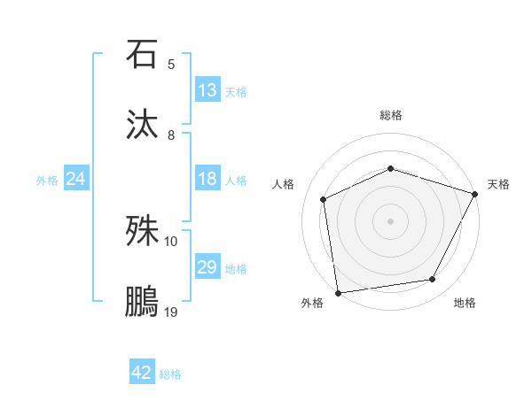 石汰 殊鵬さんを姓名の画数から五運を鑑定