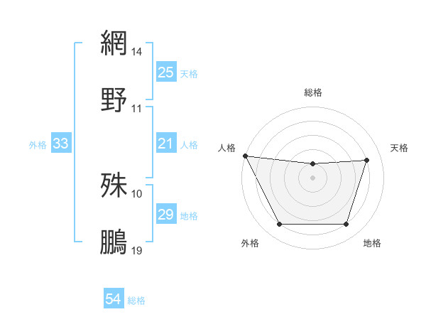 網野 殊鵬さんを姓名の画数から五運を鑑定