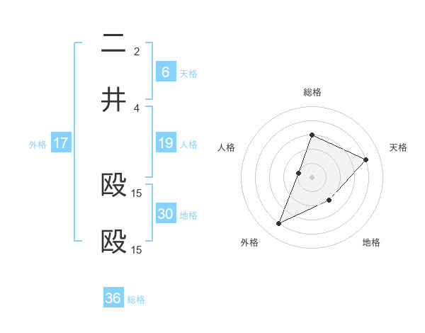 二井 殴殴さんを姓名の画数から五運を鑑定