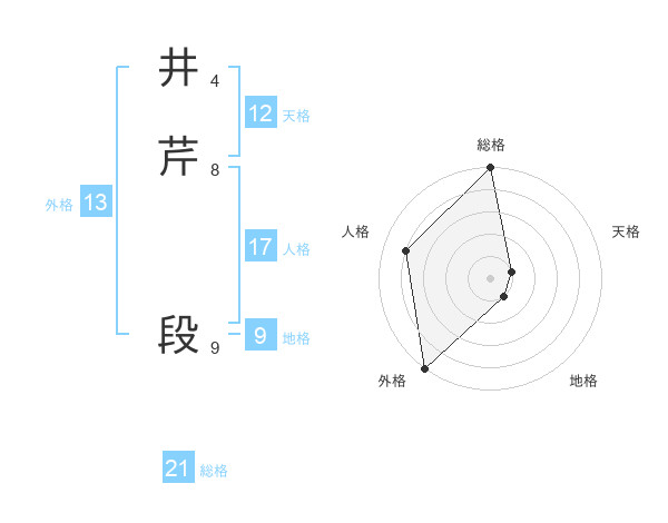 井芹 段さんの総格は21画の5点!