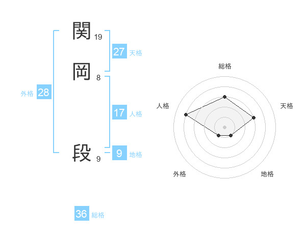 関岡 段さんを姓名の画数から五運を鑑定