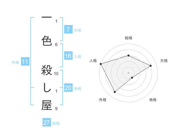 一色 殺し屋さんを姓名の画数から五運を鑑定