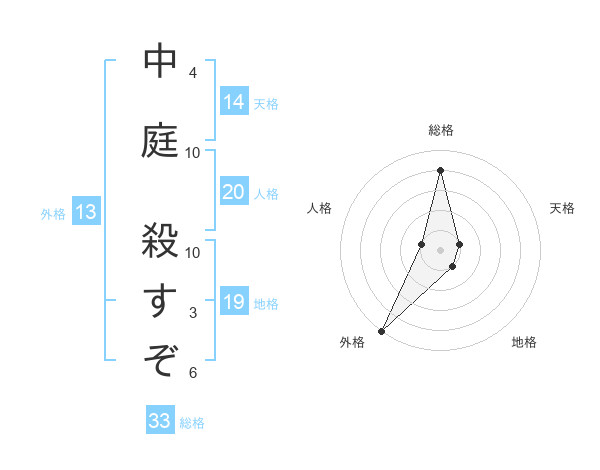 中庭 殺すぞさんの外格は13画の5点!
