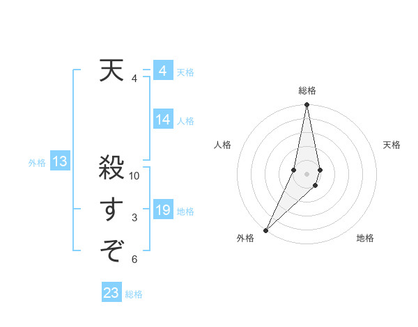 天 殺すぞさんを姓名の画数から五運を鑑定