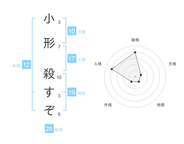 小形 殺すぞさんを姓名の画数から五運を鑑定