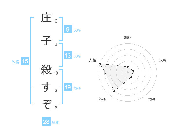 庄子 殺すぞさんの外格は15画の4点!