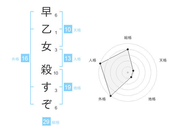 早乙女 殺すぞさんを姓名の画数から五運を鑑定