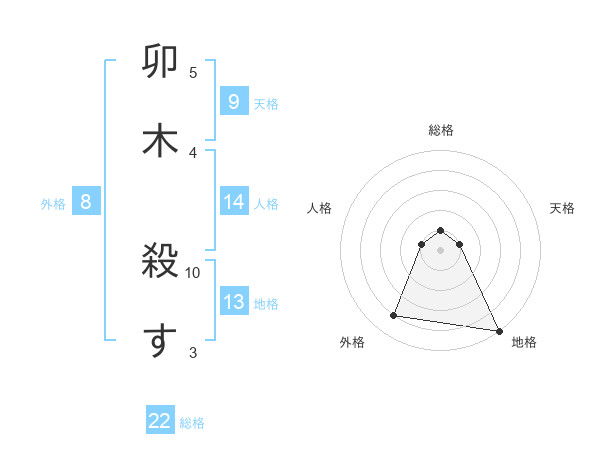 卯木 殺すさんを姓名の画数から五運を鑑定