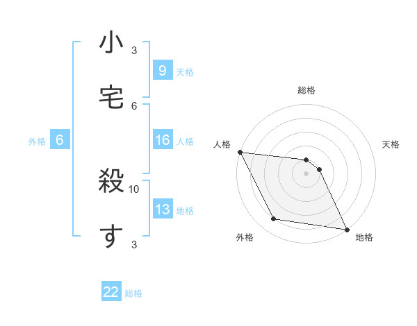 小宅 殺すさんの地格は13画の5点!