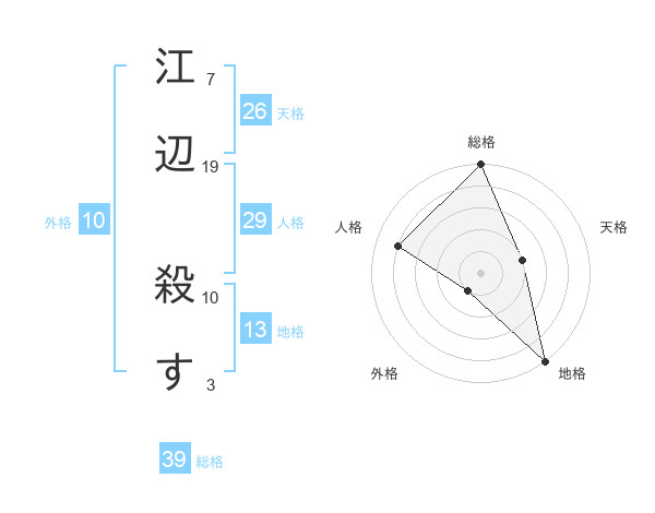 江辺 殺すさんを姓名の画数から五運を鑑定