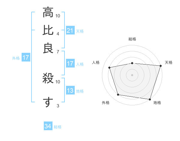 高比良 殺すさんの天格は21画の5点