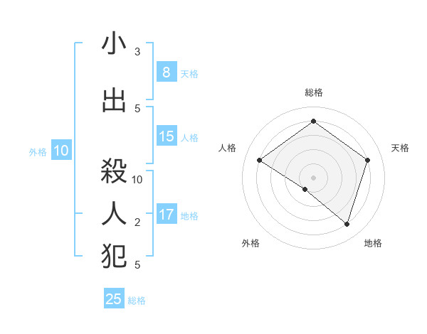 小出 殺人犯さんの総格は25画の4点!