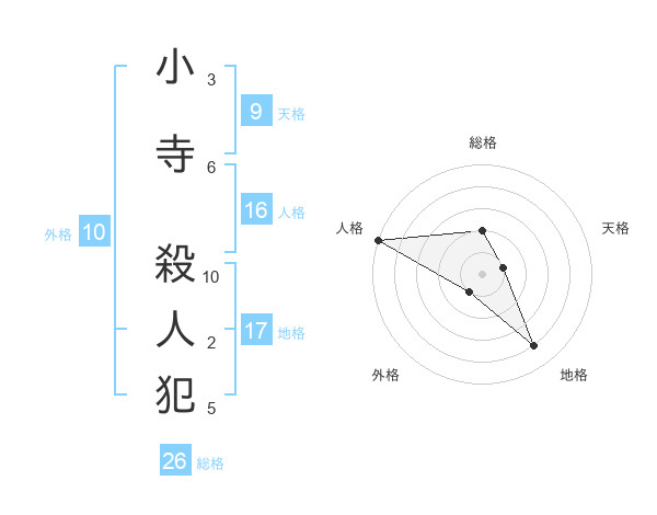 小寺 殺人犯さんの総格は26画の2点!
