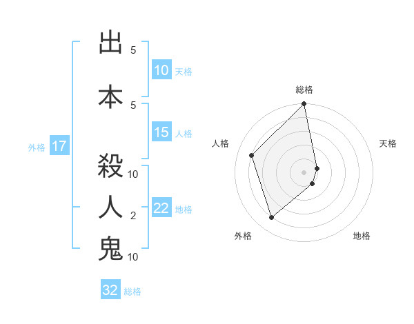 出本 殺人鬼さんの地格は22画の1点!