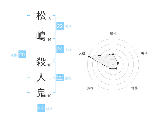 松嶋 殺人鬼さんを姓名の画数から五運を鑑定