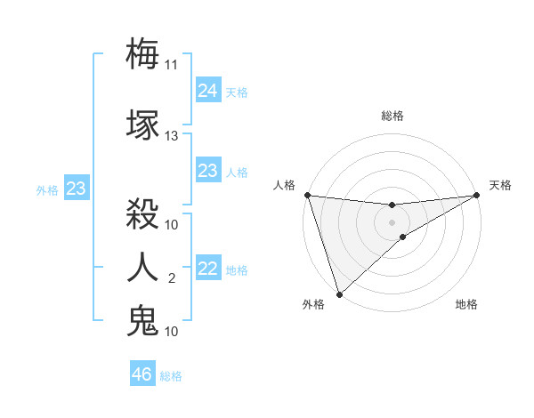 梅塚 殺人鬼さんを姓名の画数から五運を鑑定