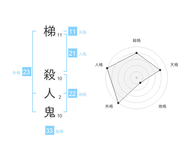 梯 殺人鬼さんを姓名の画数から五運を鑑定