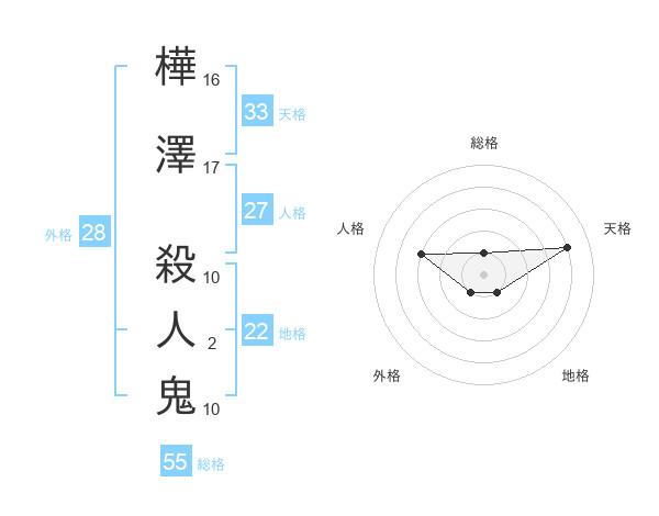 樺澤 殺人鬼さんを姓名の画数から五運を鑑定
