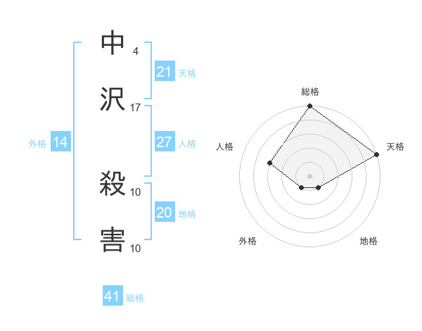 中沢 殺害さんの外格は14画の1点!