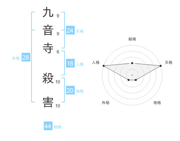 九音寺 殺害さんを姓名の画数から五運を鑑定