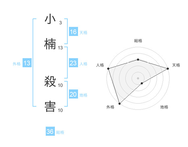 小楠 殺害さんの外格は13画の5点!