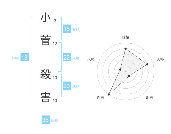 小菅 殺害さんの総格は35画の4点!