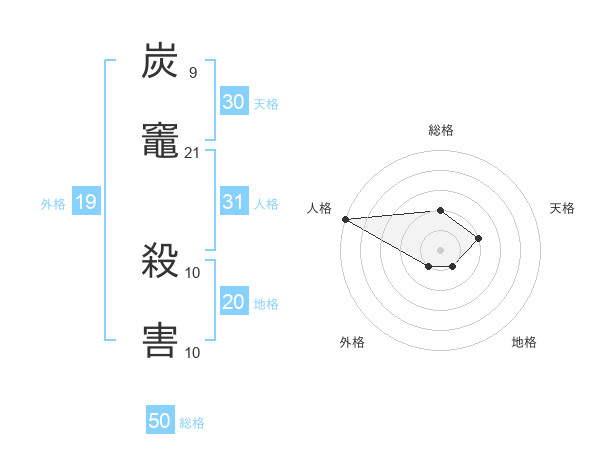 炭竈 殺害さんを姓名の画数から五運を鑑定