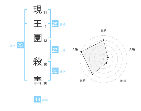 現王園 殺害さんを姓名の画数から五運を鑑定