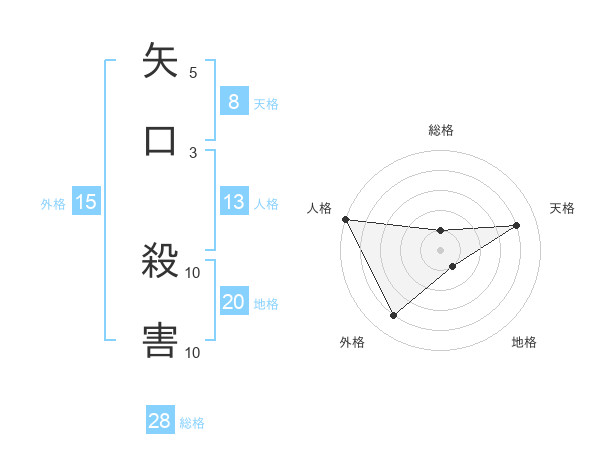 矢口 殺害さんの地格は20画の1点!