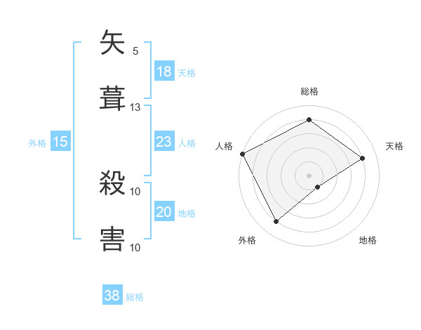 矢葺 殺害さんの地格は20画の1点!