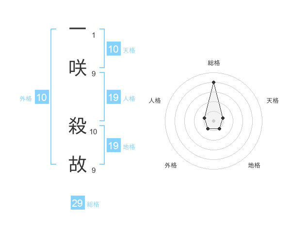 一咲 殺故さんの総格は29画の4点!