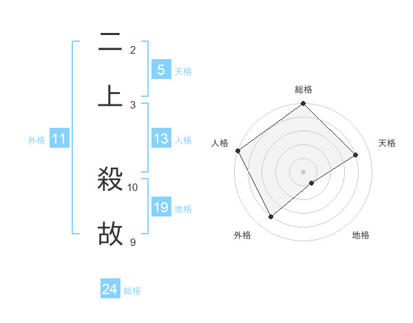 二上 殺故さんの総格は24画の5点!