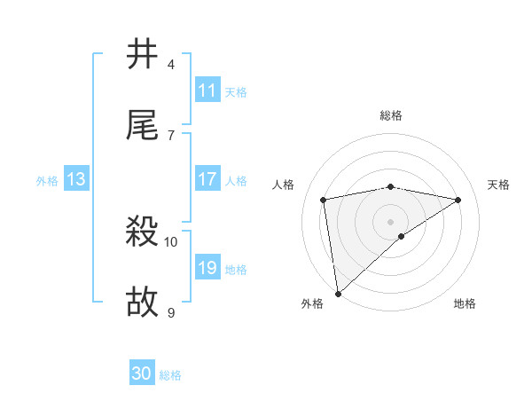 井尾 殺故さんを姓名の画数から五運を鑑定