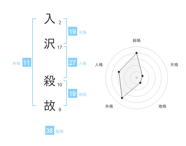 入沢 殺故さんを姓名の画数から五運を鑑定