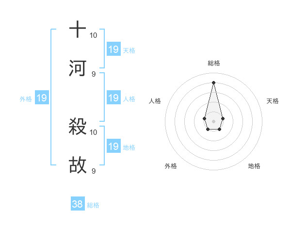 十河 殺故さんの総格は38画の4点!