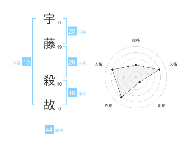 宇藤 殺故さんを姓名の画数から五運を鑑定