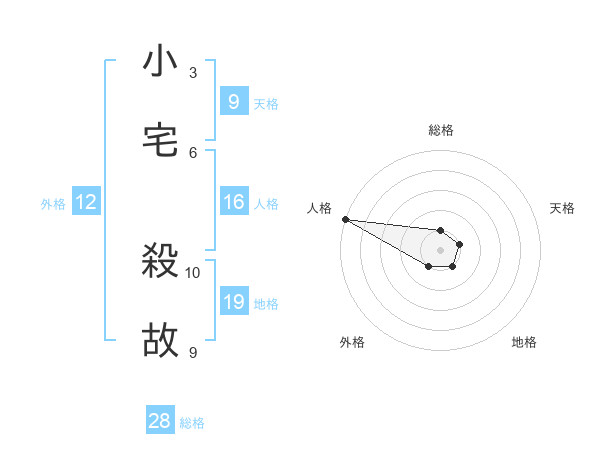 小宅 殺故さんの総格は28画の1点!