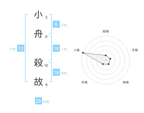 小舟 殺故さんを姓名の画数から五運を鑑定