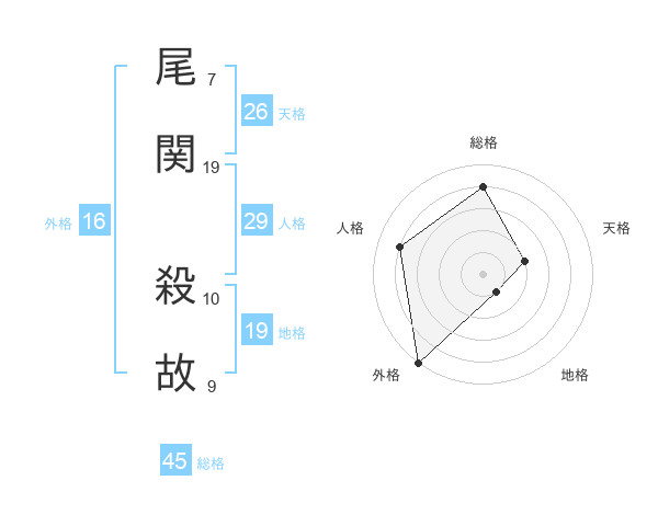 尾関 殺故さんの総格は45画の4点!