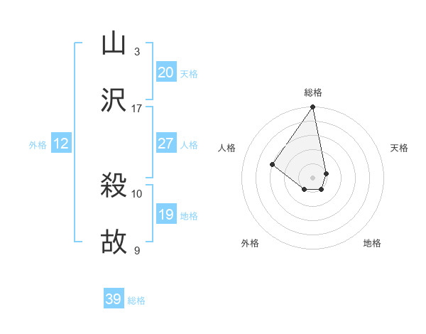 山沢 殺故さんの総格は39画の5点!