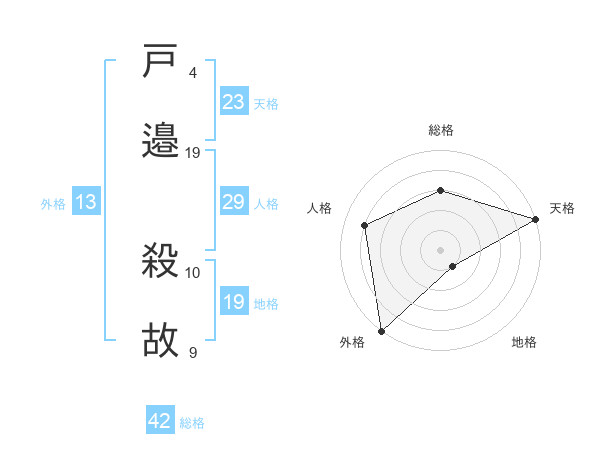 戸邉 殺故さんを姓名の画数から五運を鑑定