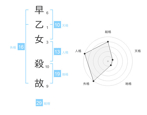 早乙女 殺故さんを姓名の画数から五運を鑑定