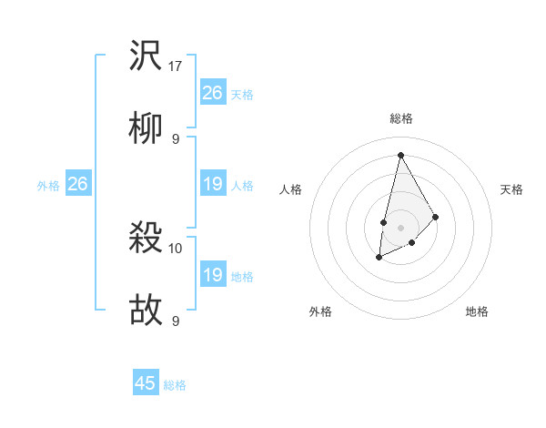 沢柳 殺故さんを姓名の画数から五運を鑑定